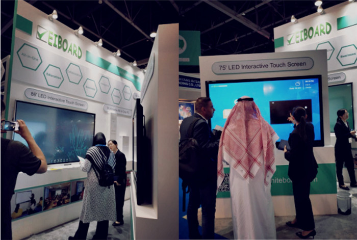 方成教學超窄邊框液晶系列,采用超窄、三等邊設計原理,全新拉絲陽極氧化工藝,以精湛的外觀吸引參展嘉賓圍觀,其中多屏預覽、多屏交互、語音控制等功能,貼近實際客戶的需求,吸引現(xiàn)場嘉賓們的體驗,深受中東地區(qū)嘉賓們的肯定。